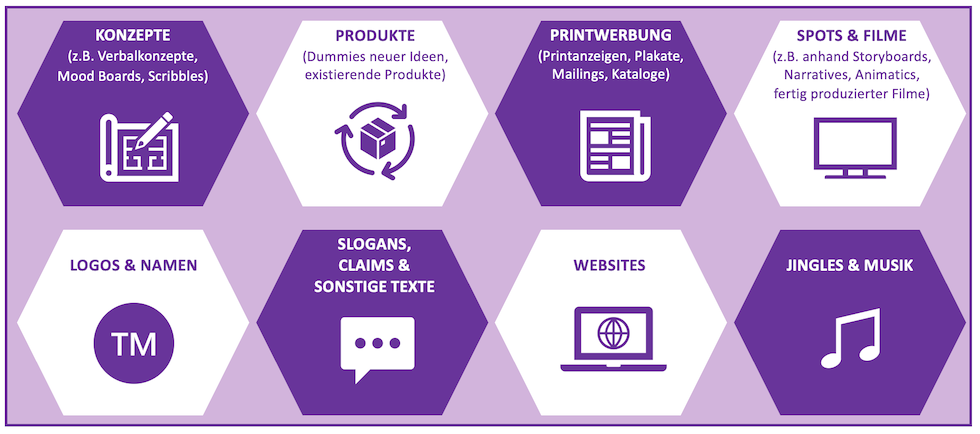 Je nach Entwicklungsstadium der zu testenden Idee prüfe ich Ihre Entwürfe und Vorschläge auf Herz und Nieren - vom ersten gedanklichen Konzept bis hin zum bestehenden Produkt oder fertig produzierten Spot: