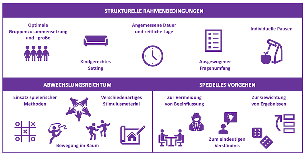 Neben einer individuell zugeschnittenen und sorgfältig durchdachten Herangehensweise trägt ein(e) kompetente(r) und erfahrene(r) Moderator(in) maßgeblich zum Gelingen und zu verwertbaren Ergebnissen im Rahmen der Kinder- und Jugendmarkforschung bei.