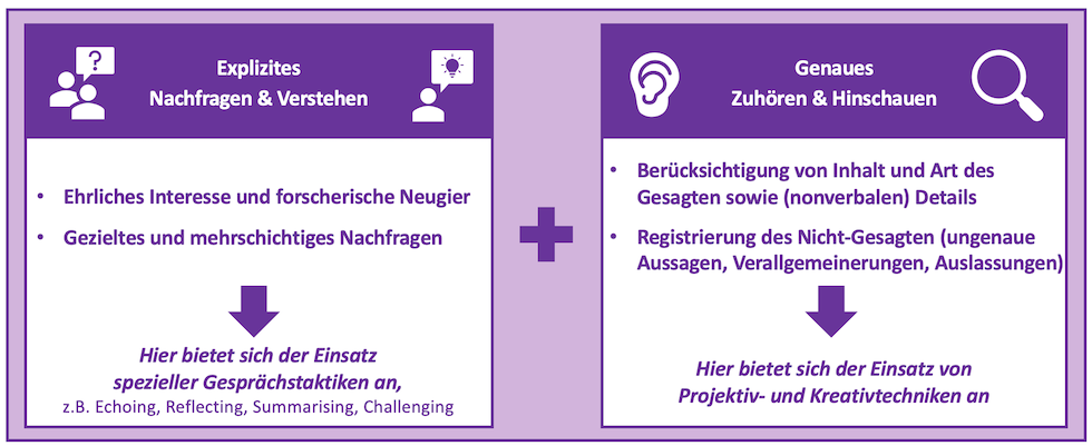 Voraussetzung hierfür ist ein(e) erfahrene(r) Moderator(in), welche(r) den oder die Befragte(n) mit Feingefühl auf die zu erwartenden Aufgaben einstimmt und leitet.
