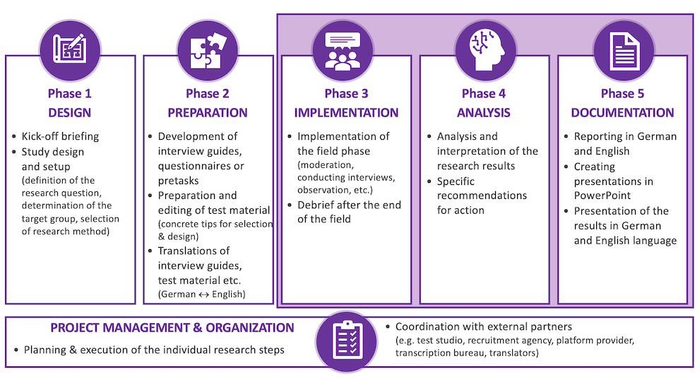 Depending on the research object and the research question, we decide together on the appropriate research path that will lead us to our goal: