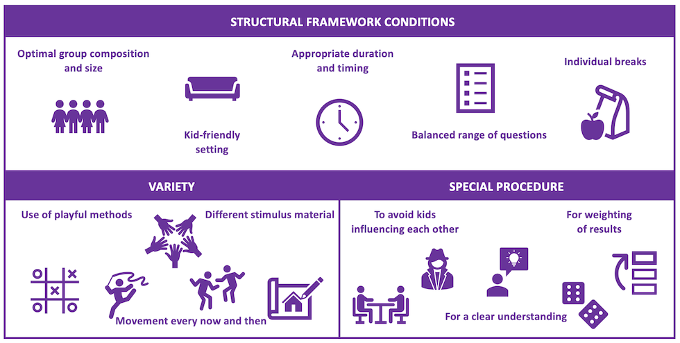 In addition to an individually tailored and carefully thought-out approach, a competent and experienced moderator contributes significantly to the success and usable results of kids and youth market research.